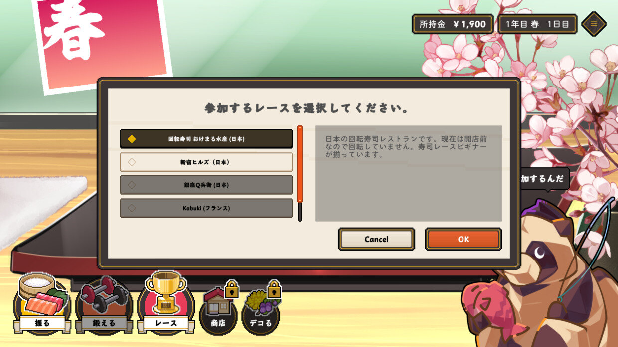 如果能順利在比賽中獲勝,就能獲得獎金。雖然迫不及待想參加下一場比賽,但壽司在每次比賽後都會失去鮮度和狀態。至於要到什麼程度才算合適,則完全取決於自己,但請記住它畢竟是生鮮食品。適當地設定一個界限,並準備新的壽司吧。