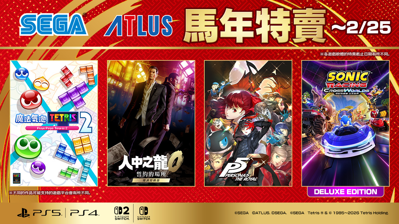 【以下內容為廠商提供資料原文】 世雅股份有限公司現正舉辦「SEGA 馬年特賣」活動。針對 PlayStation Store 及 Nintendo eShop 所販售的部分 PlayStation 5/PlayStation 4/... 繼續閱讀
