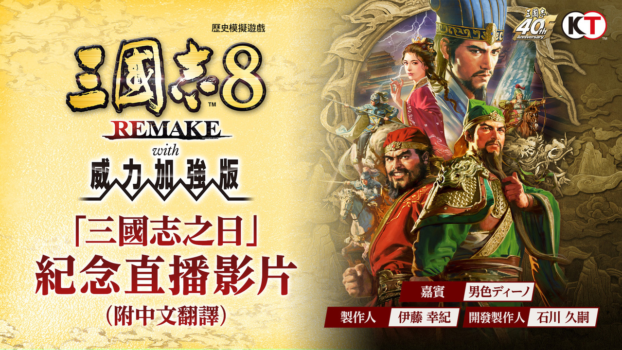 臺灣光榮特庫摩宣布,紀念「三國志」系列 40 週年的歷史模擬遊戲《三國志 8 REMAKE with 威力加強版》今日公布了全新劇本、古武將以及新功能的相關情報,以及《三國志 8 REMAKE with 威力加強版》「三國志之日」紀念直播影... 繼續閱讀