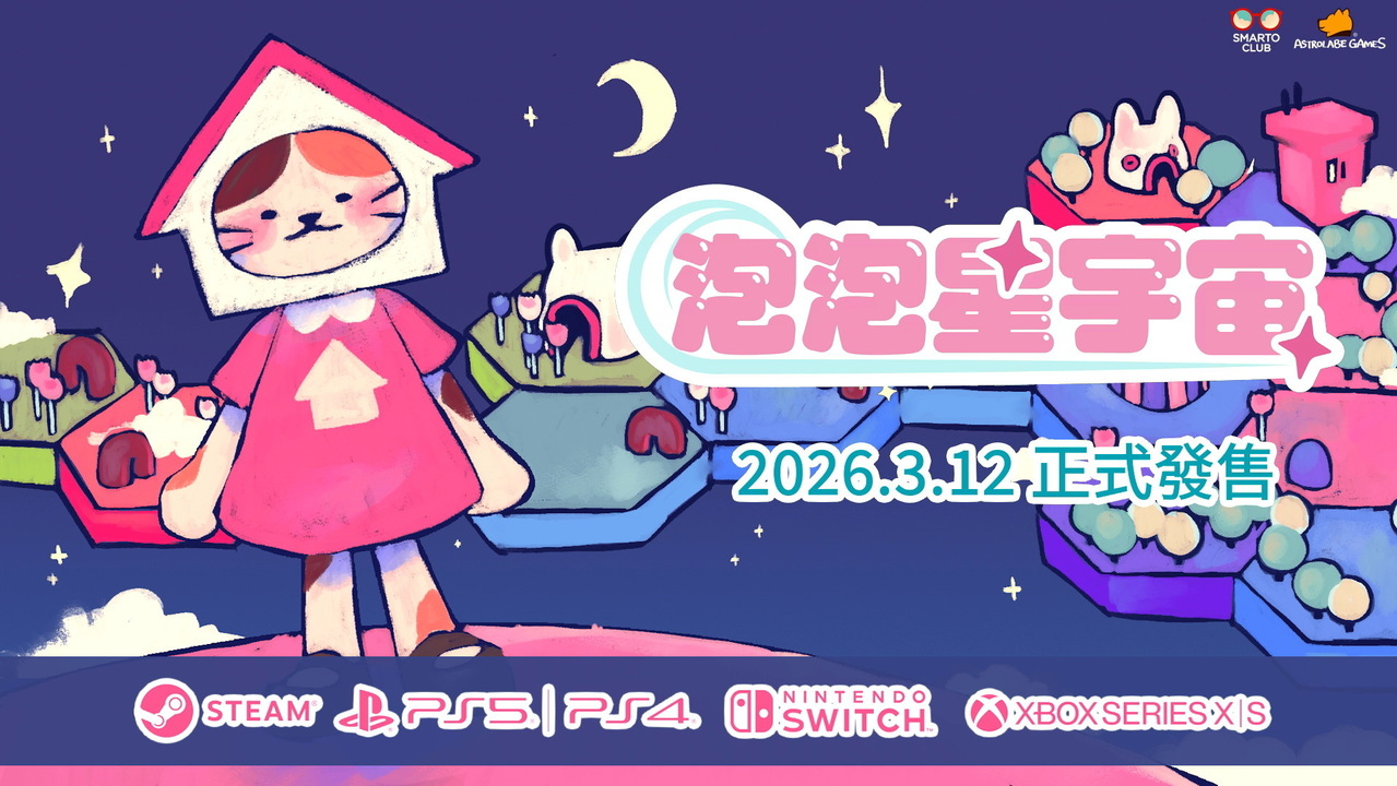 遊戲發行商 Astrolabe Games 今日宣布,由 Smarto Club 製作的銀河建設模擬遊戲《泡泡星宇宙(Bubblegum Galaxy)》將於 2026 年 3 月 12 日發售,屆時將同步推出 PC、PS5 / PS4、N... 繼續閱讀